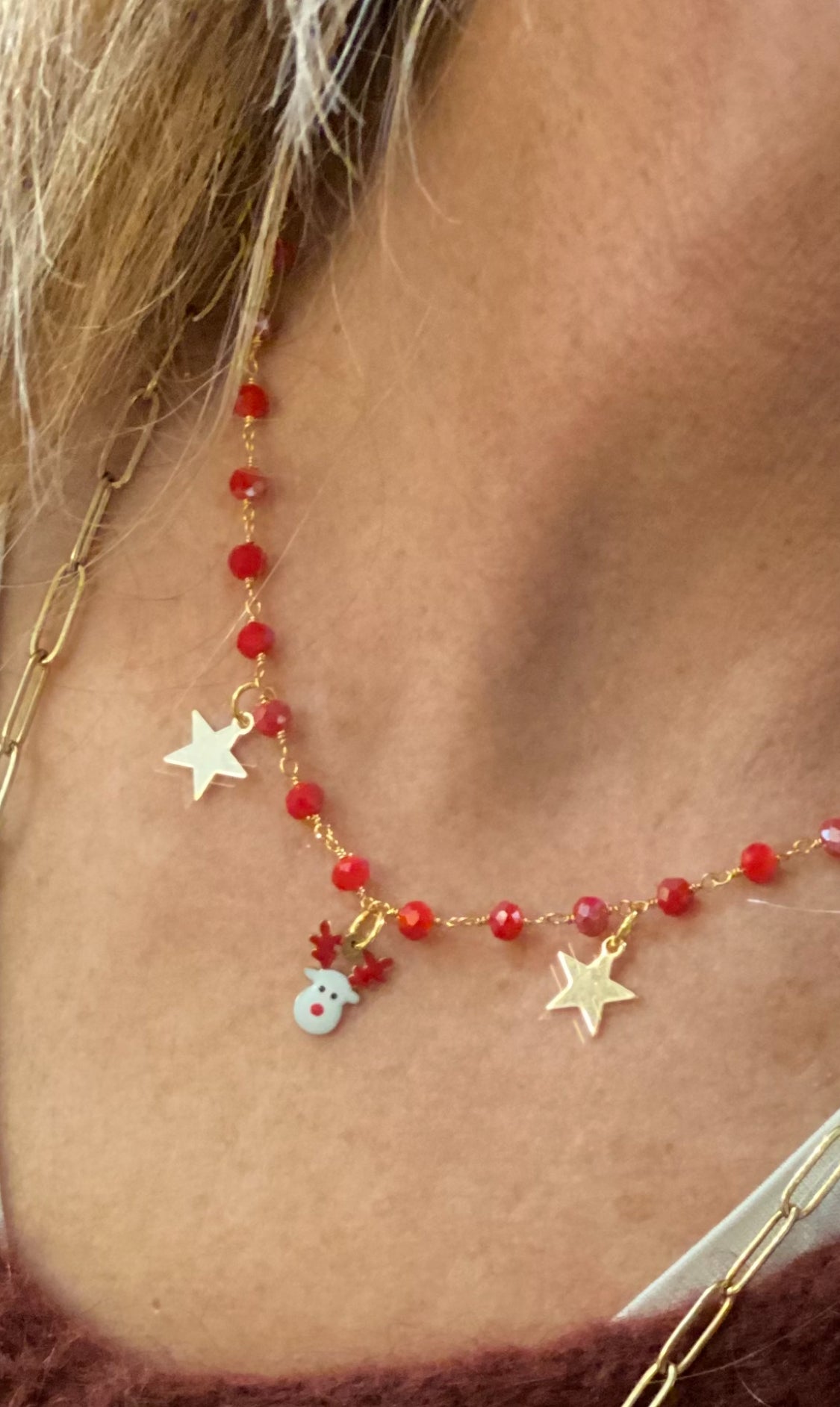 Nelle note specifica il colore che preferisci del girocollo e del pendente in smalto da aggiungere alle due stelline .